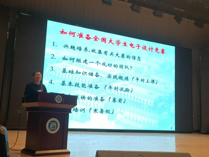 报告中朱老师重点介绍并解读了全国大学生电子设计竞赛与中国“互联网+”大学生创新创业大赛等相关赛事内容,并以电子设计竞赛为例,全面分析大学生参赛所需学科知识、赛前准备、现场测试等各环节,提高学生参赛认知与积极性。