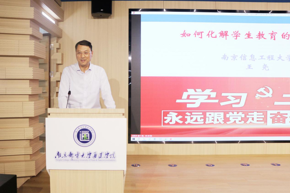 10月9日下午,南京信息工程大学原党委副书记、副校长,江苏省高校辅导员研究会副理事长,中国高教学会学生工作研究会副理事长王尧教授来完美官网作“如何化解学生教育的痛点与难点”专题报告。院长王国平,党委副书记兼副院长王楷,学生工作处、招生就业处、团委、二级学院党总支负责人及全体辅导员现场聆听报告。报告会由院长王国平主持。