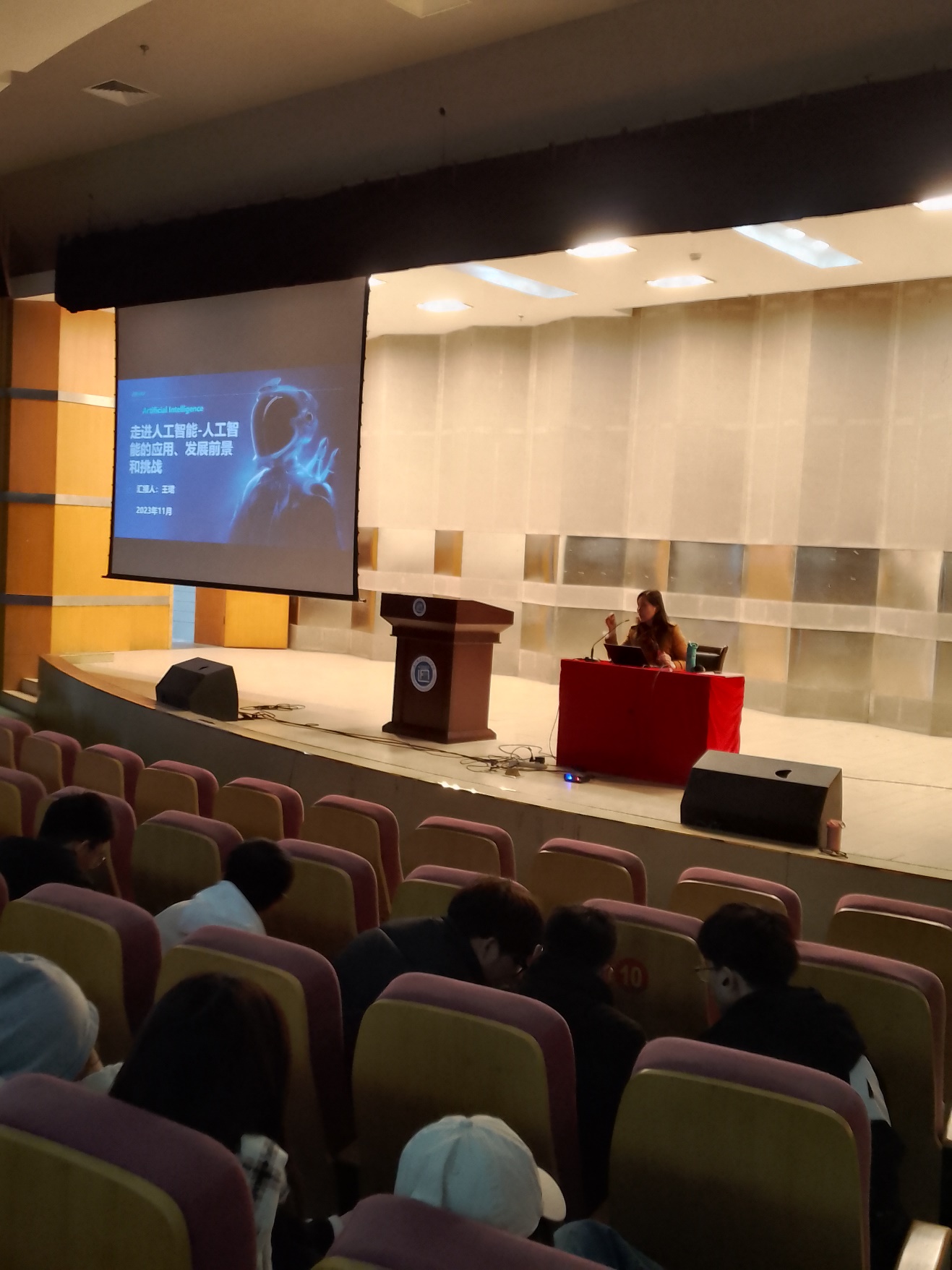 王珺副教授介绍了人工智能的发展、应用和关键技术。近年来人工智能(AI)的迅速发展,尤其是ChatGPT的出现,使得AI已经成为了科技行业中的核心技术,许多大型科技企业都将其视为未来发展的方向之一。还介绍了人工智能在医疗保健、金融、制造业、教育等领域的应用。她鼓励同学们认真学习专业课,努力提升专业水平,积极参与科研和竞赛。