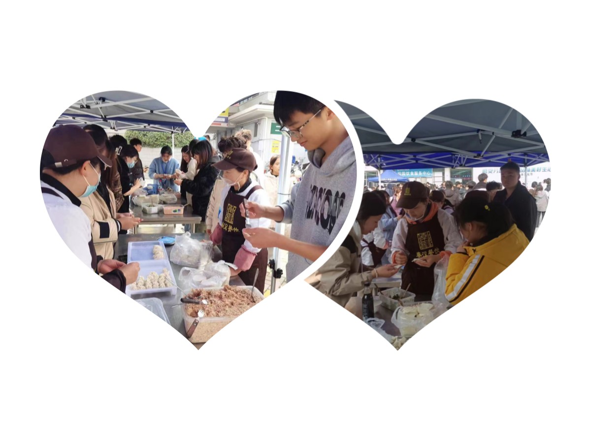 面点制作学习体验及校园美食展销区域也是十分热闹,学生们有的在美食展销区品味美食,有的跟着食堂面点大师学习包饺子、馄饨、元宵的制作,出力流汗,感受劳动带来的别样快乐,给本届美食文化节增添新的色彩。
