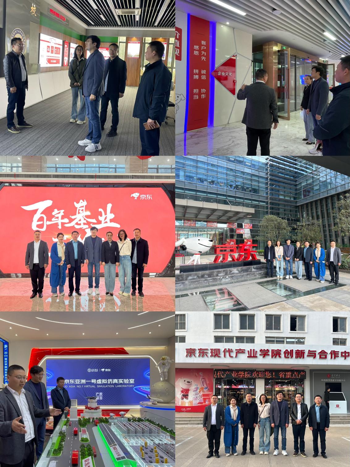 在京彩(江苏)科技有限公司,刘伟副书记一行参观了京东校园馆、京东大楼以及员工宿舍、宿迁学院京东产教融合示范基地。随后与京彩(江苏)科技有限公司许宏伟经理、邵美玲经理等领导进行座谈交流。座谈围绕电商行业规模现状、发展前景,实习生的生活、工作及思想动态,专业与市场需求等进行深度探讨交流。邵美玲经理表示,公司为毕业生提供了一个广阔的发展平台,希望能进一步加强校企合作,携手培养高质量的社会需求人才,实现校企双方互利共赢。