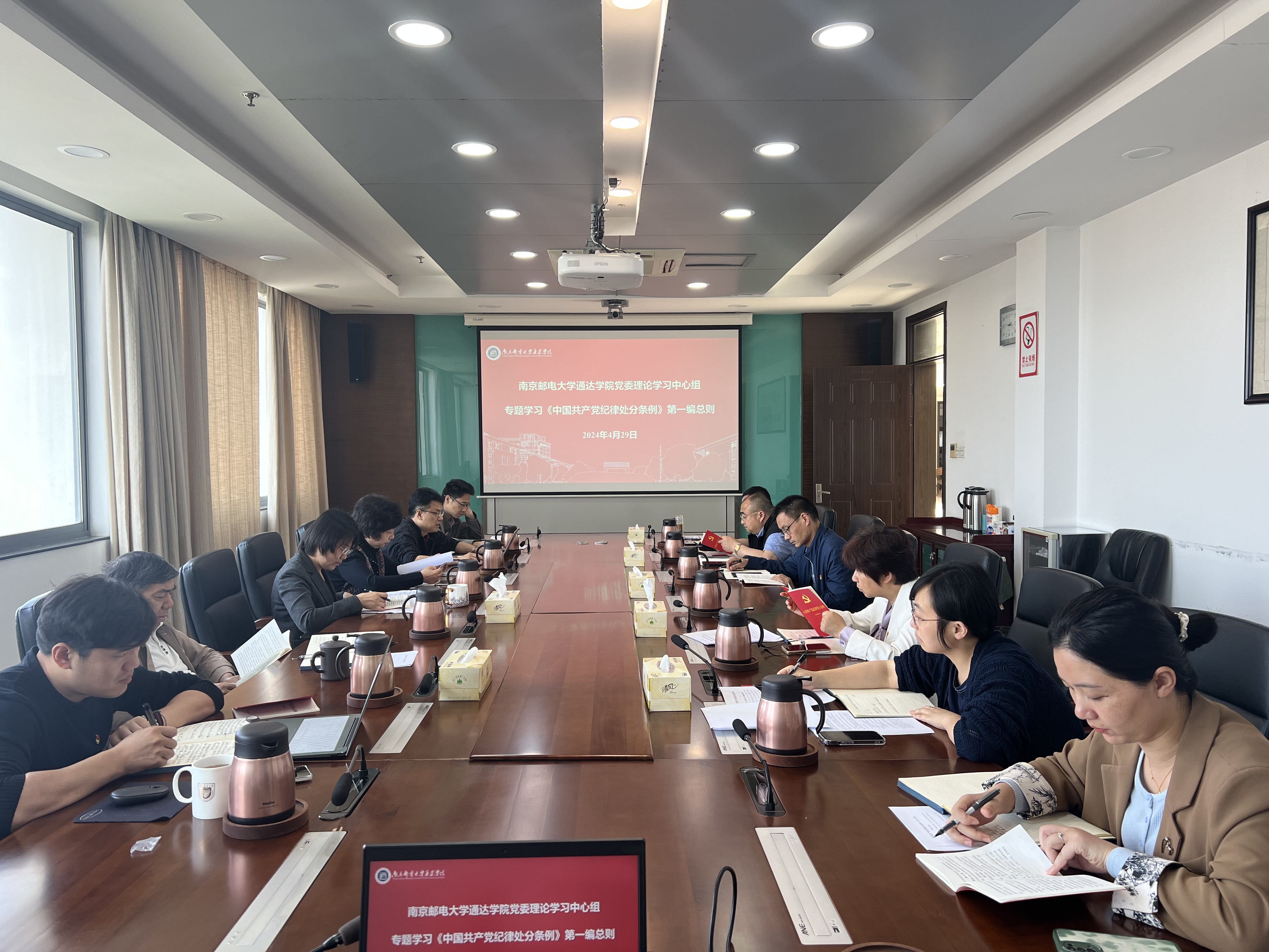4月29日下午,通达学院党纪学习教育读书班在学院行政楼10楼会议室,专题学习《中国共产党纪律处分条例》第一编总则,读书班学习会由学院党委书记赵允玉主持。