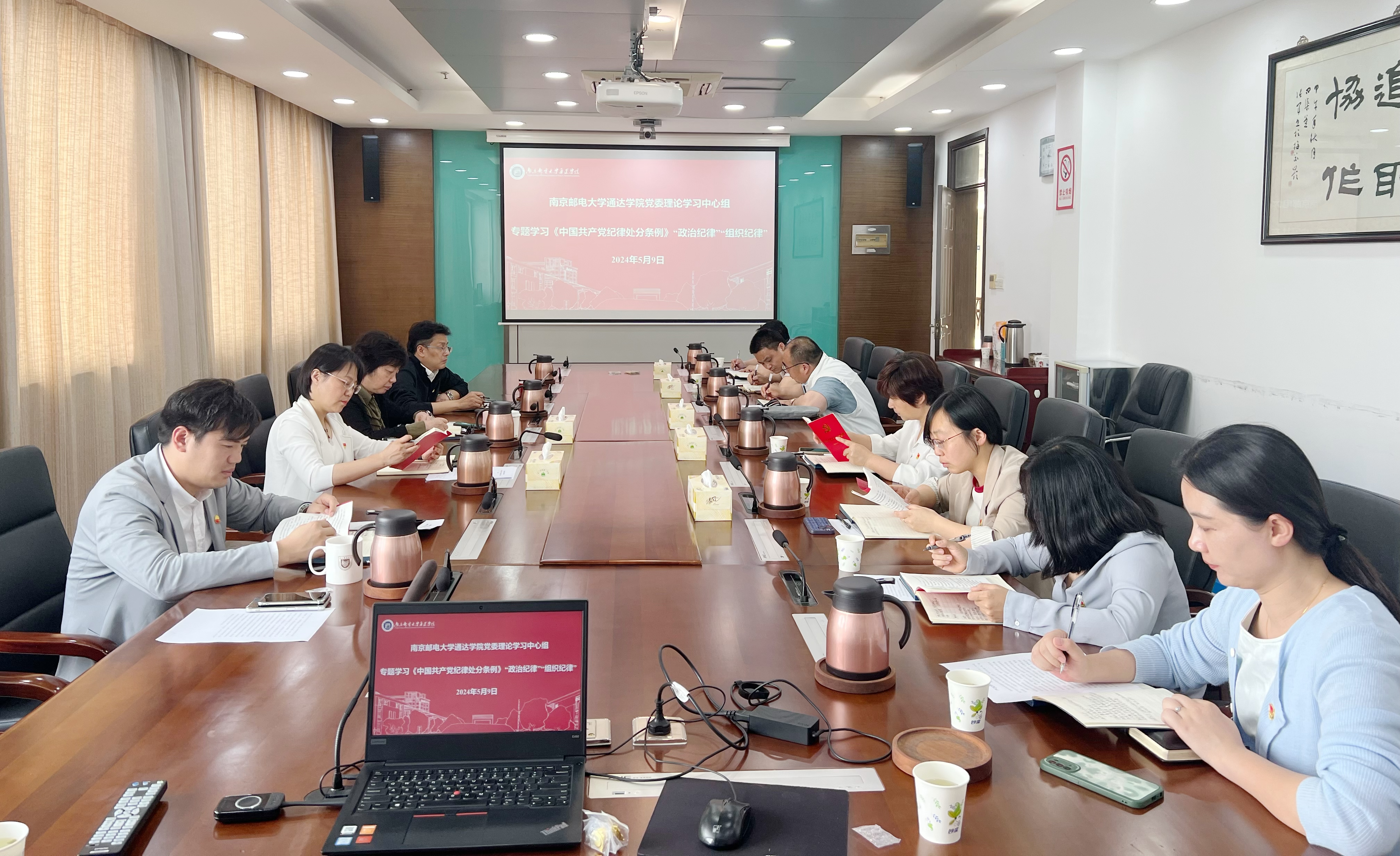 5月9日下午,通达学院党纪学习教育读书班在学院行政楼10楼会议室,专题学习《中国共产党纪律处分条例》“政治纪律”“组织纪律”的主要内容,读书班学习会由学院党委书记赵允玉主持。