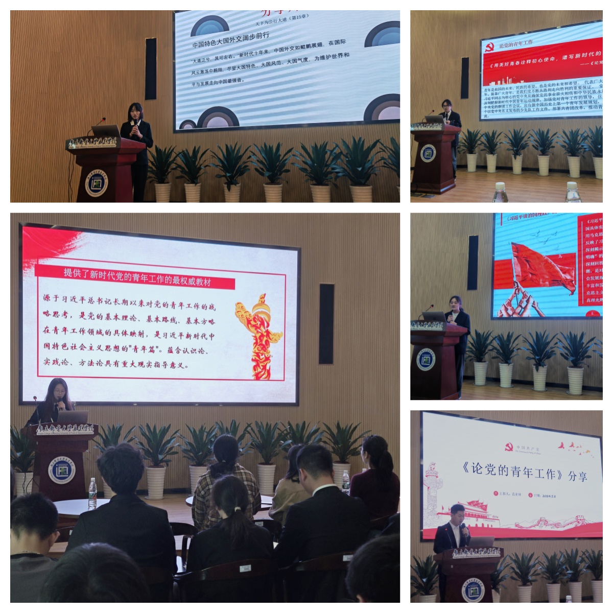 在主持人热情洋溢的开场致辞之后,红色经典阅读分享环节正式拉开帷幕。学生会代表居刘倩等五位同学结合自身的阅读感悟,分别解读了《习近平著作选读》《习近平与大学生朋友们》《论党的青年工作》《中国式现代化面对面》等经典著作的意义,剖析了中国式现代化的深厚历史底蕴、广泛的现实基础和光明的发展前景,探讨了青年学生应该如何自觉践行社会主义核心价值观,争做有理想、敢担当、能吃苦、肯奋斗的新时代好青年。这些分享不仅让同学们对这些经典书籍有了更深刻的理解,也进一步激发了大家对五四精神的共鸣。