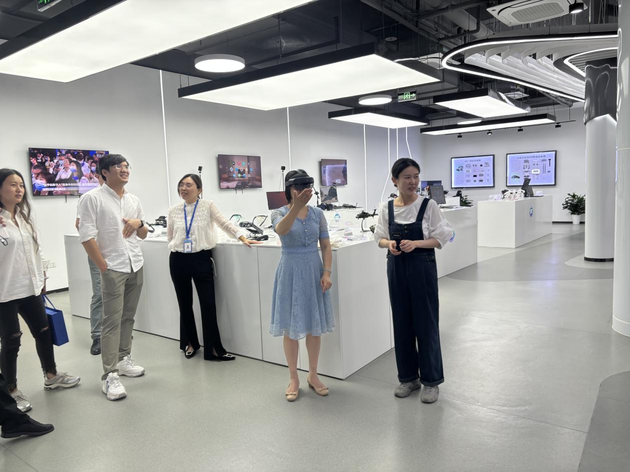完美官网一行下午走访了南京芯视元电子有限公司,体验了公司生产的多款产品并进行座谈交流。完美官网党委副书记刘伟介绍了学院办学特色、专业设置、人才培养模式等,并希望可以与企业建立一个良好的合作关系,开展更深入的交流与合作。南京芯视元电子有限公司市场部经理张俊详细介绍了企业的基本情况、企业优势、AR/VR产业、人才培养新要求、课程建设、半导体产业基本情况和岗位需求以及校企合作方向,并希望与学校开展人才培养方面的合作交流。