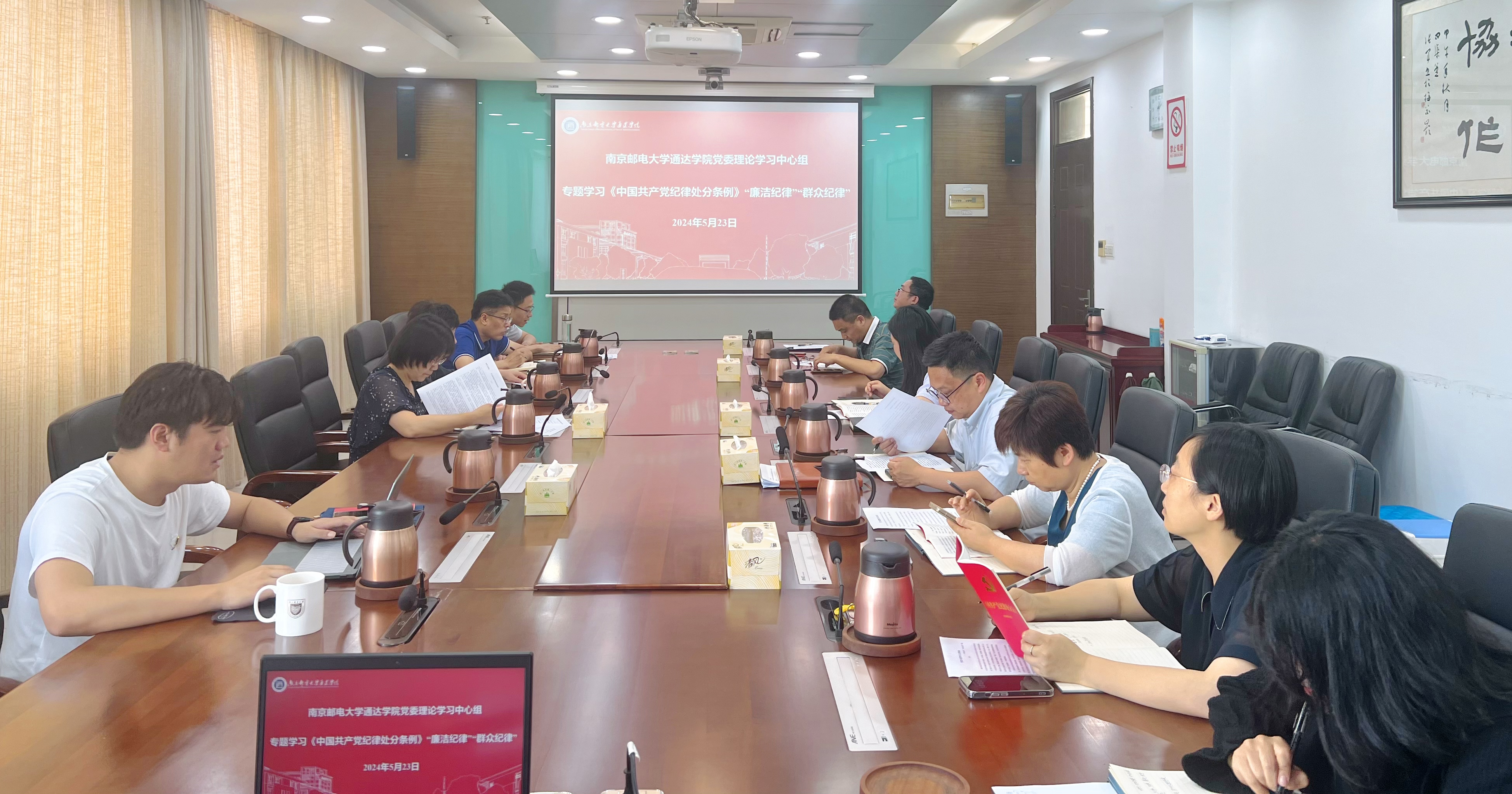 5月23日下午,通达学院党纪学习教育读书班在学院行政楼10楼会议室,专题学习《中国共产党纪律处分条例》“廉洁纪律”“群众纪律”的主要内容,读书班学习会由学院党委书记赵允玉主持。