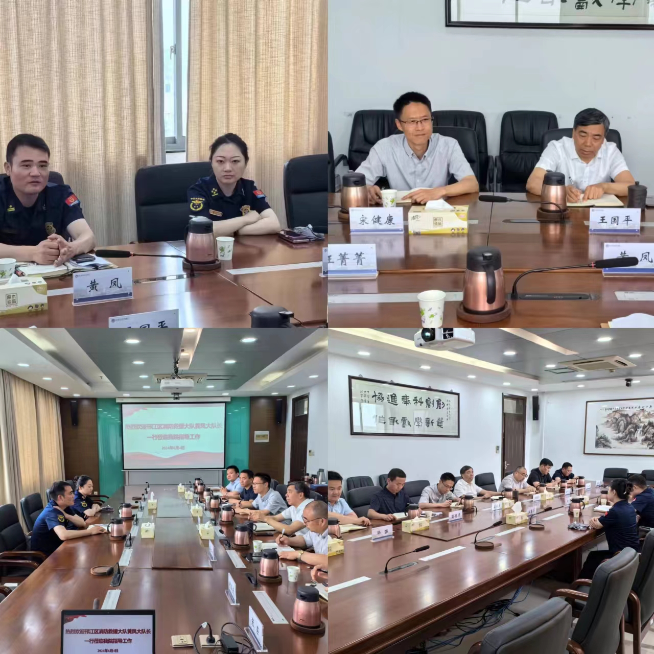 6月4日下午,扬州市邗江区消防救援大队大队长黄凤、参谋汪菁菁莅临完美官网,对完美官网消防安全工作进行指导,院长王国平,纪委书记宋健康,保卫处及相关部门负责人参加座谈交流。