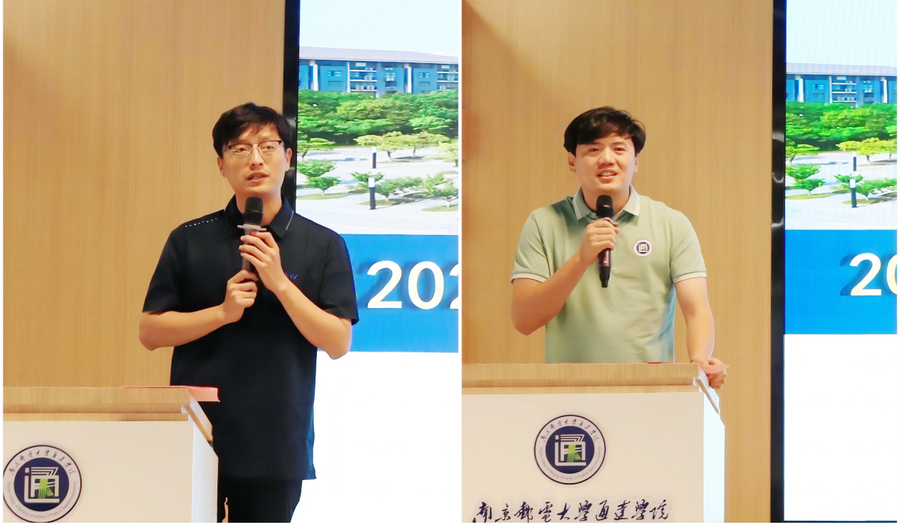 江苏师范大学科文学院党委副书记丁力、完美官网党委副书记兼副院长刘伟作培训总结
