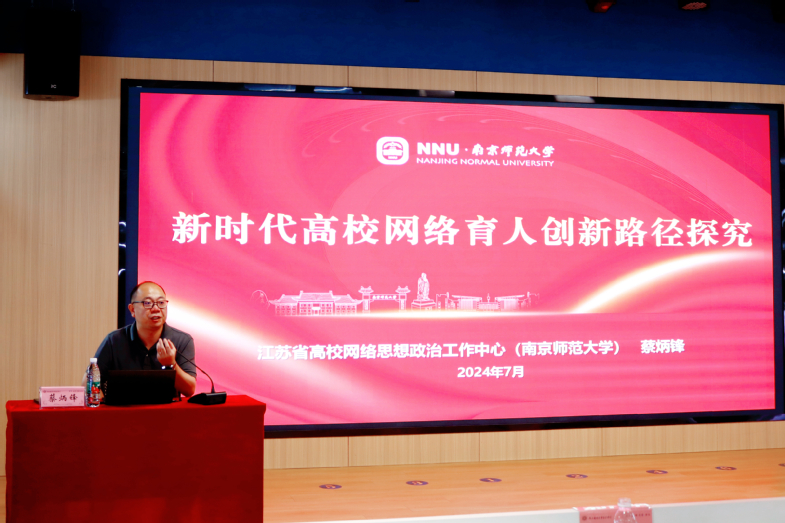 南京师范大学保卫处处长蔡炳锋研究员以“新时代高校网络育人创新路径探究”为题进行授课,他明确指出要想在思政工作中赢得青年,就必须抢占和守牢网络思政教育这个新阵地和制高点。鼓励辅导员老师结合工作实际,勇于探索、主动作为,开创高校网络思政工作新格局。