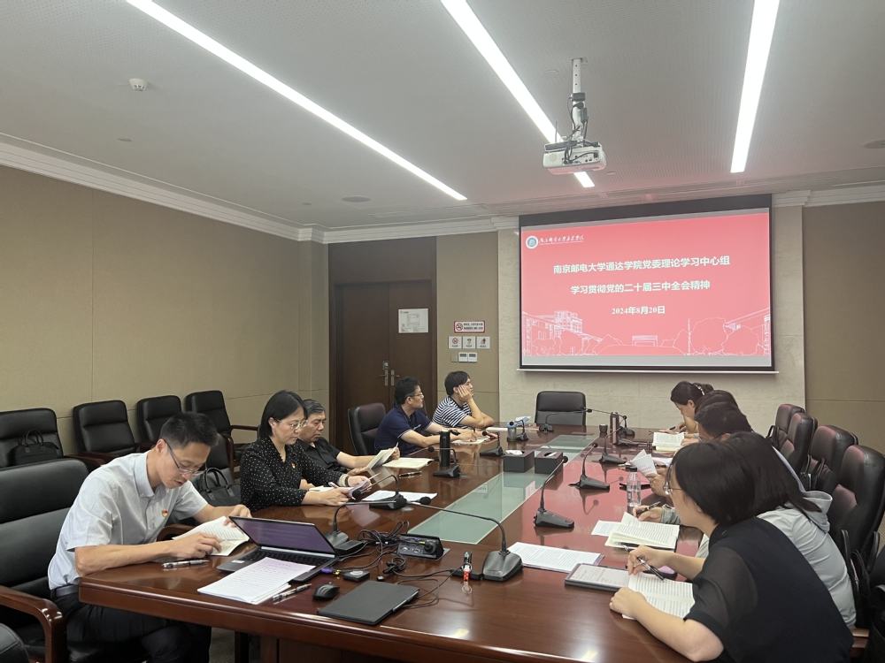 8月20日下午,通达学院在南京市溧水区委党校2315会议室召开学院党委理论学习中心组集体学习会,专题学习贯彻党的二十届三中全会精神。学院党委书记赵允玉主持学习会。
