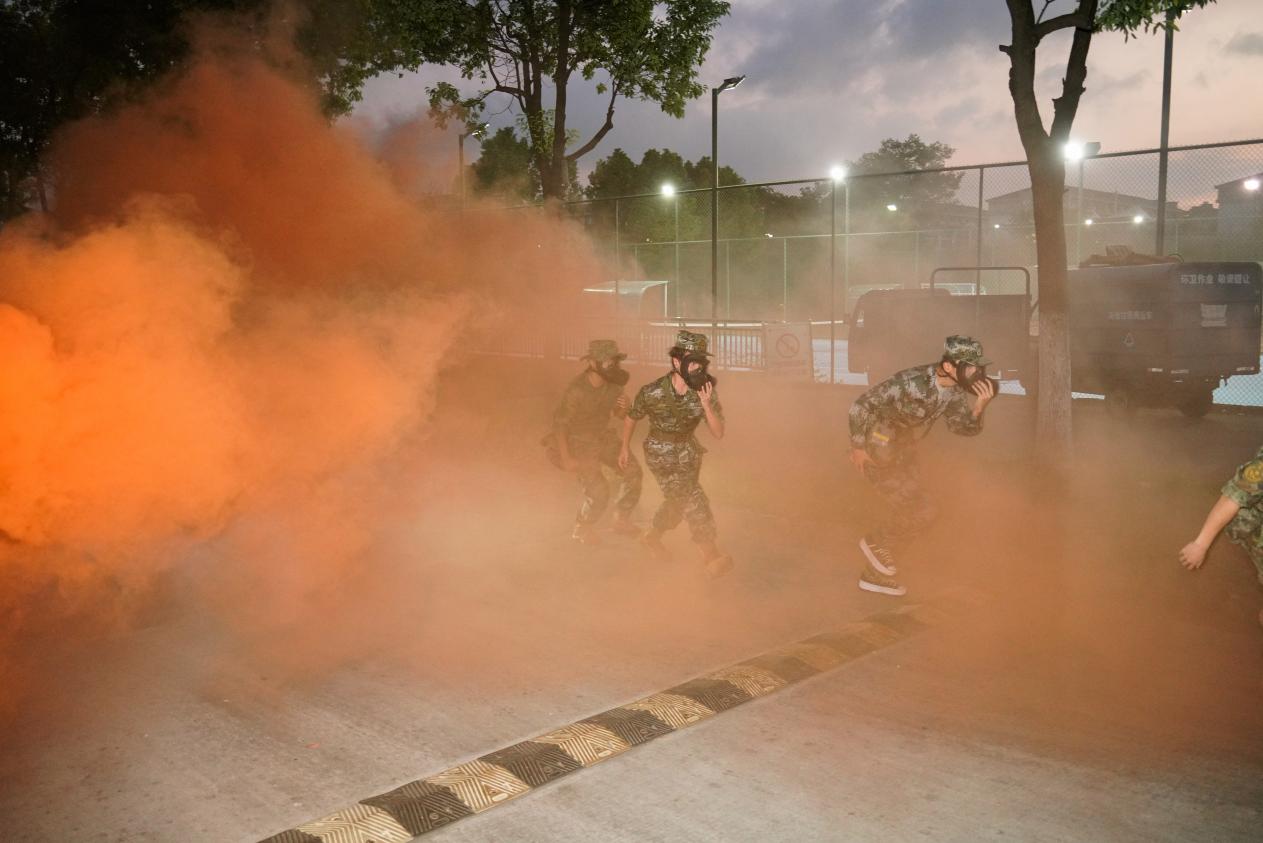 刘伟下达“出发”指令后,拉练队伍整齐有序地从学院田径场出发,沿途经过学院东门、陆洲路、邗江南路、华扬西路、扬子江南路,扬子津生态中心、高旻寺路,最终返回至学院东门。拉练途中设置了穿越毒区、匍匐前进、紧急避险、防空隐蔽、跨越障碍等模拟实战环节,让本次拉练内容更加充实、充满挑战。同学们在长途跋涉的过程中、在紧张刺激的氛围中,感受到了军人保家卫国的责任与担当。那一刻,他们仿佛真的成为了战场上的勇士,用热血和激情点燃了青春的火焰。