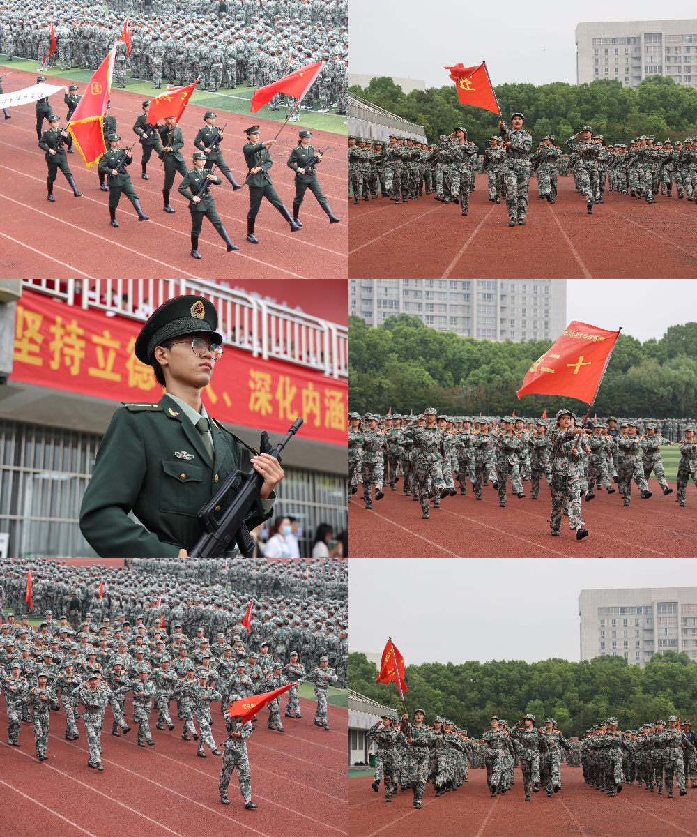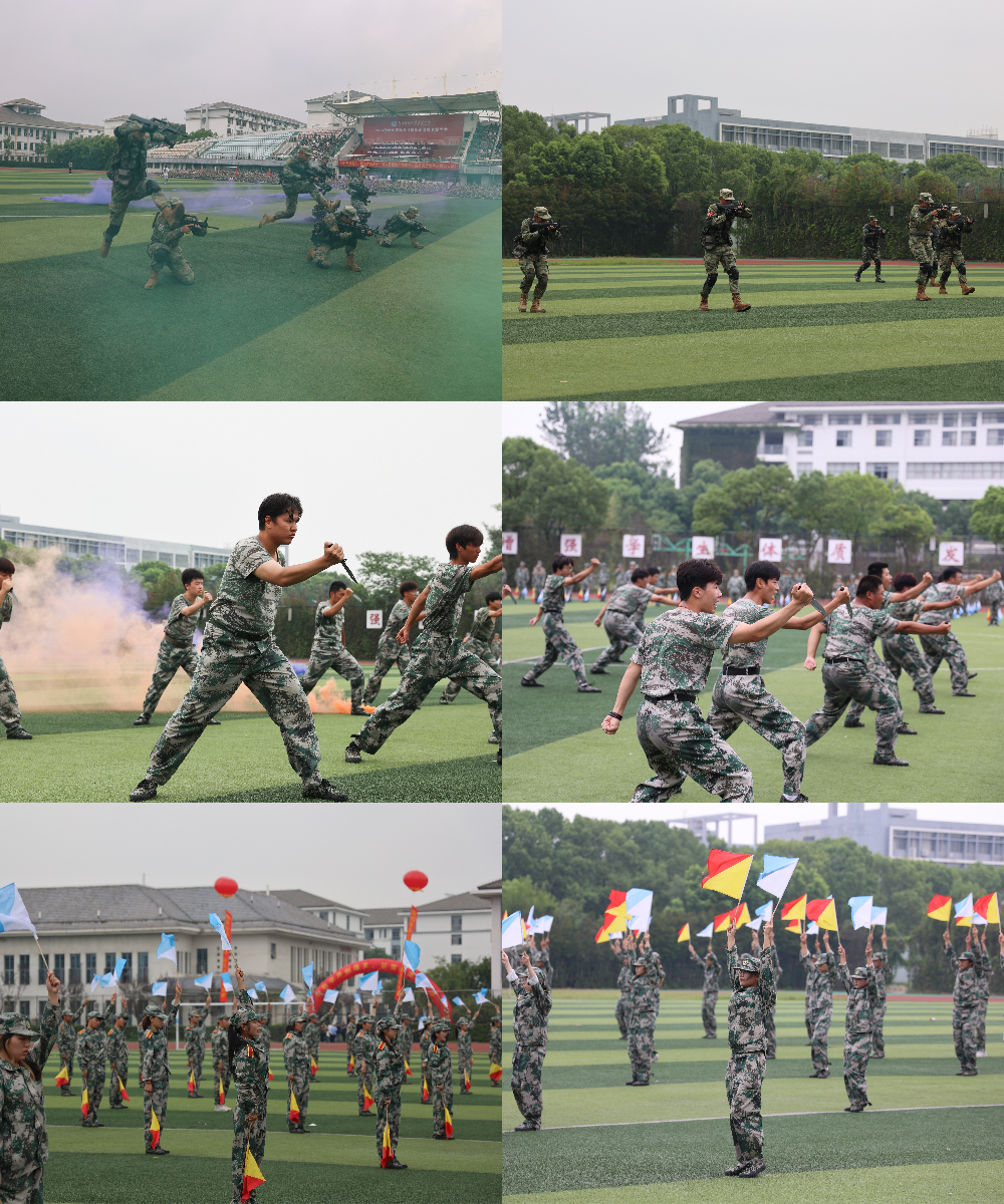 军训汇报演出正式开始。新生身着统一的迷彩服,以整齐的队列、铿锵的步伐、坚定的眼神,依次走过主席台,他们军姿挺拔,动作规范,口号响亮,充分展现了新时代青年的风采和军训成果。匕首操表演眼神坚毅,步伐稳健,气势如虹。旗语表演动作精准无误,配合默契十足,彩旗在空中划出一道道绚丽的弧线。军训教官战术表演,身手敏捷,动作娴熟。军训成果展示的一令一动赢得了在场师生的阵阵喝彩,展现了军训的多维度教学成果。