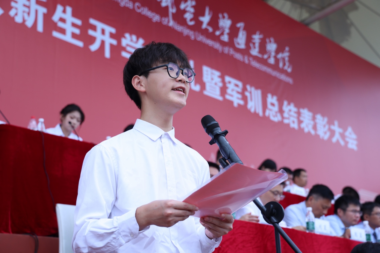 2024级新生代表,电子工程学院集成电路设计与集成系统专业的新生吴司瀚激动地与大家一起共勉,与大家一起明确目标,刻苦学习,提升素质,开拓创新,秉承南邮精神,勇敢攀登,成为有为青年。