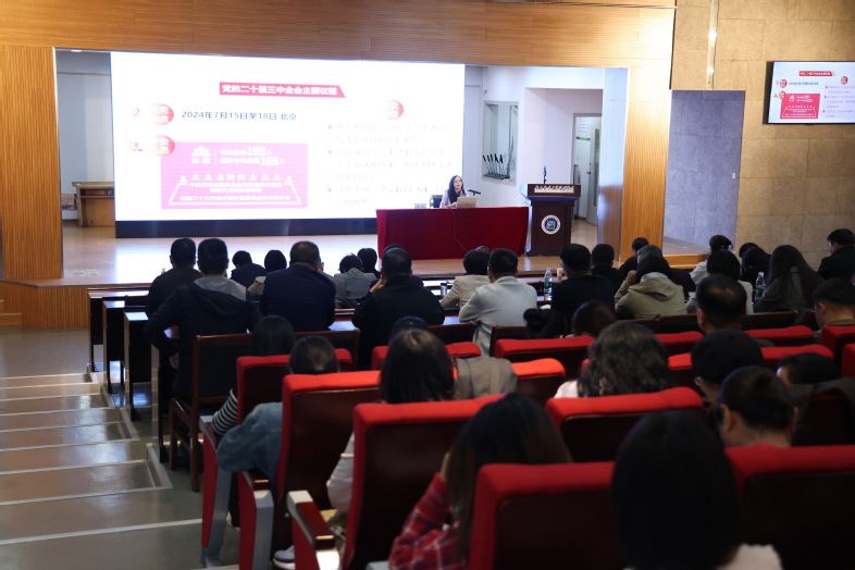 吴玲处长以“新征程上进一步全面深化改革的政治宣言和行动纲领”为题,结合自身工作实际和思考,从深刻认识党的二十届三中全会的主题和意义;深刻认识进一步全面深化改革的目标和原则;全面准确理解进一步全面深化改革重大举措等三个方面,对党的二十届三中全会精神进行解读。