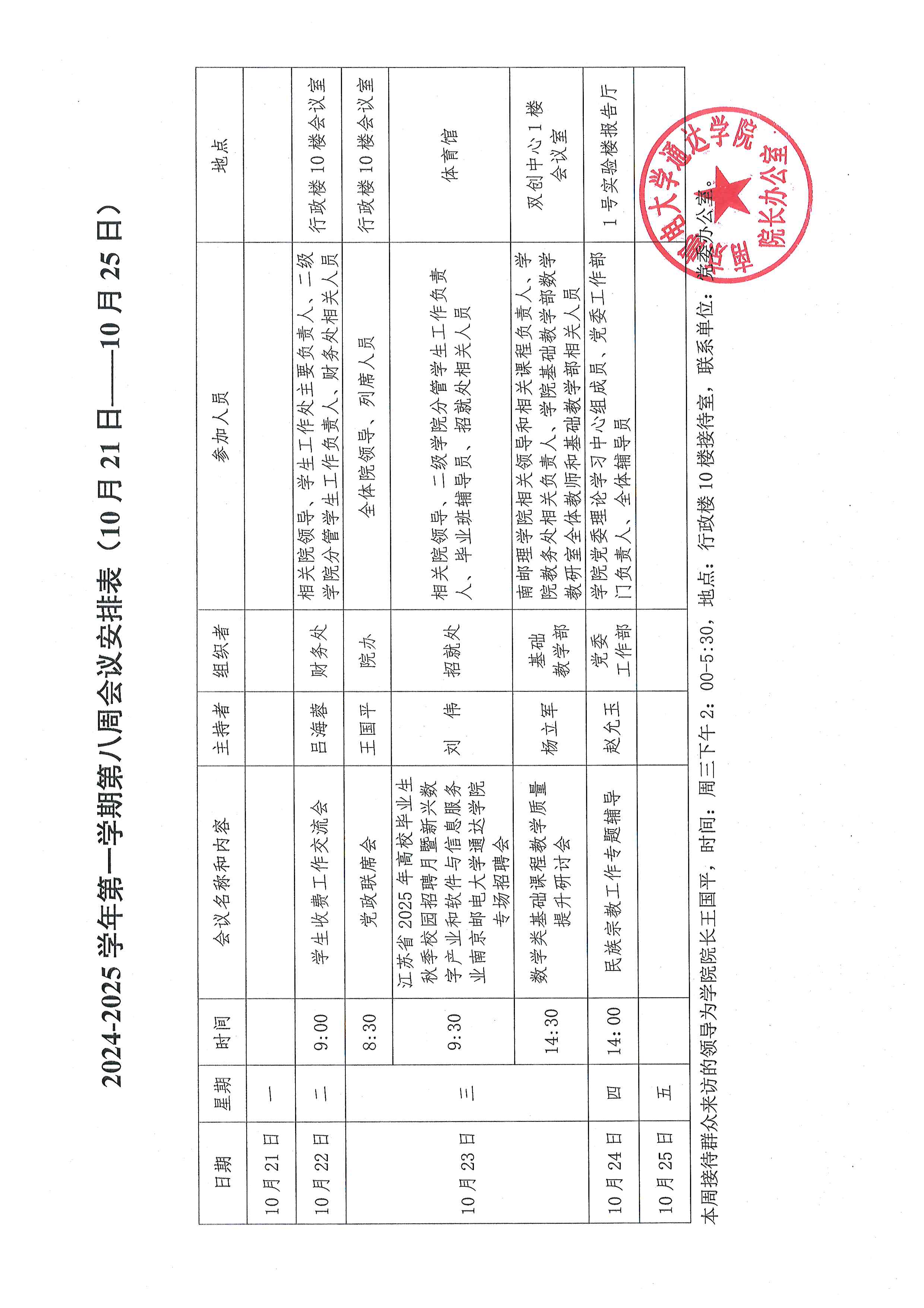 2024-2025学年第一学期第八周会议安排表