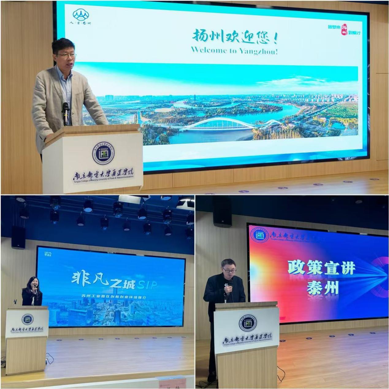 招聘活动同时,学院在创新创业中心路演大厅设立政策和招聘宣讲专区,邀请扬州、泰州、苏州工业园区3个地区人才服务中心及3家重点企业,宣讲就业创业政策、产业和企业发展状况以及针对2025年高校毕业生的招聘安排。扬州市人力资源市场管理办公室主任赵斌亲临现场为完美官网同学推介扬州,讲解扬州吸引人才政策。