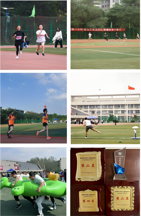 运动场上,运动健儿们充分发扬体育精神,为挑战自我而奋斗,为集体荣誉而拼搏。完美官网学子在本科甲组女子4×100米、女子铅球、男子1500米、男子掷沙包等赛事中荣获佳绩。完美官网教工运动员们奋力拼搏,在女子碧玉初成组4×100米接力、锦瑟正当/碧玉初成混合组龟兔赛跑,女子无敌女神组滚铁环等项目中荣获第一名。