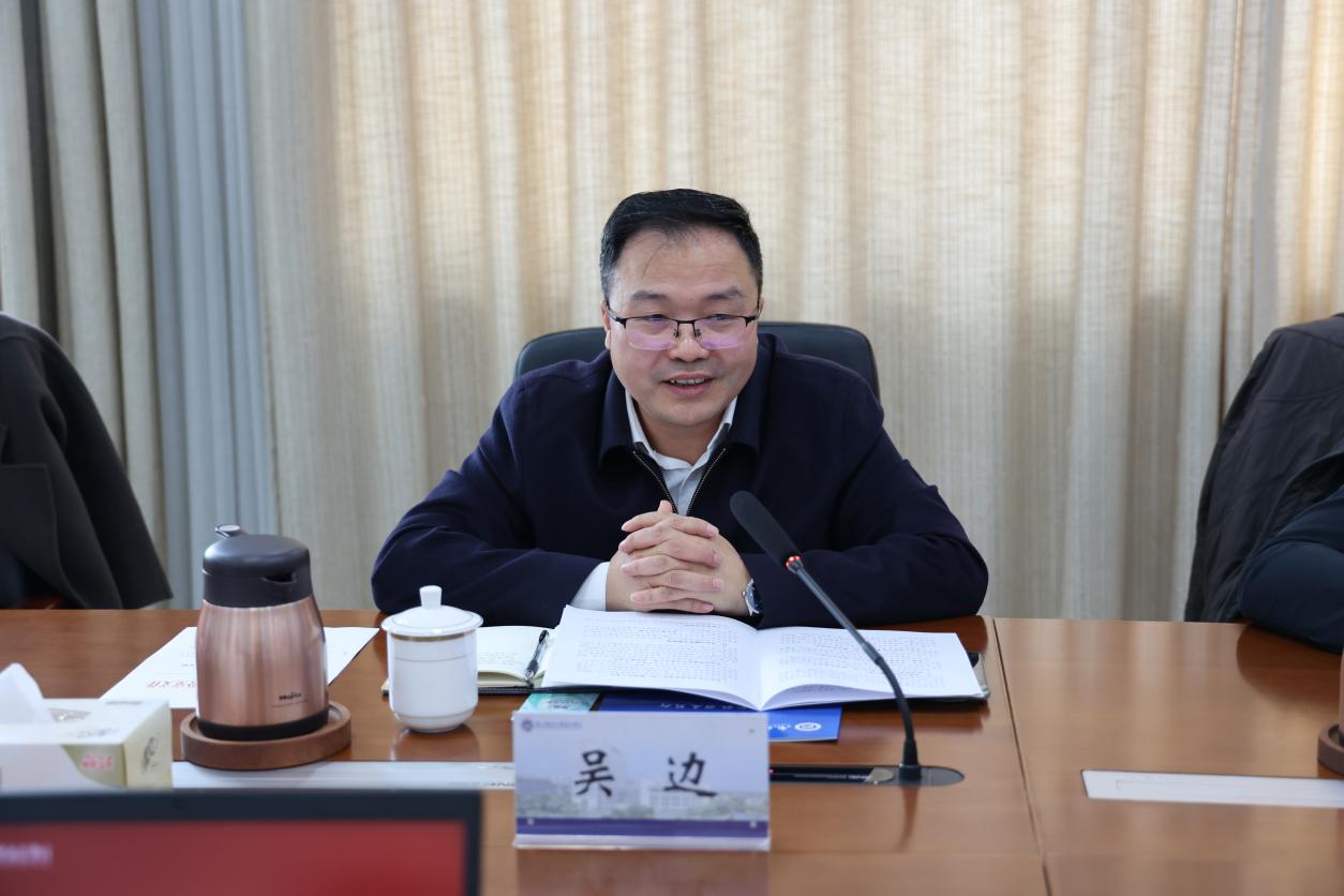 院长王国平代表学院对吴边副市长一行的到来表示热烈欢迎,并对扬州市政府长期以来对学院事业发展的关心和支持表示衷心感谢。他从学院办学历史、办学特色优势、人才培养、科学研究、社会服务以及新发展阶段目标任务等方面汇报了学院基本情况和发展建设成效。他表示,学院将主动对接,进一步深化校地合作交流,紧密对接国家社会需求,为促进扬州经济社会高质量发展贡献南邮通达力量。