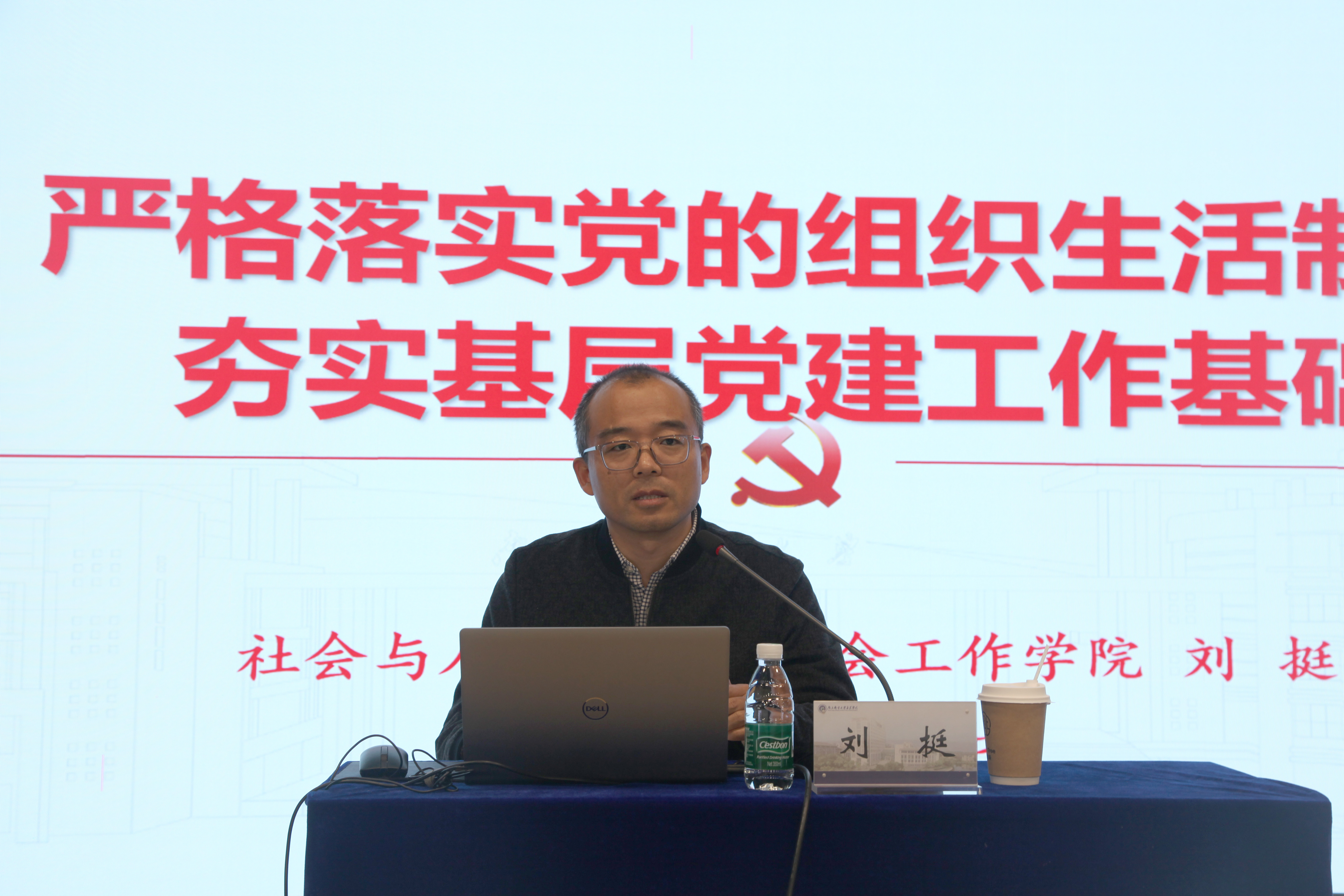 365wm完美体育网页版社会与人口学院党委书记刘挺作《严格落实党的组织生活制度,夯实基层党建工作基础》专题讲座。刘挺书记从党的组织生活的概念与原则、党的组织生活的主要内容、存在问题及应对策略、优秀组织生活案例四个方面进行分享,为干部们夯实基层党建工作基础提供了坚实的理论与实践指导。
