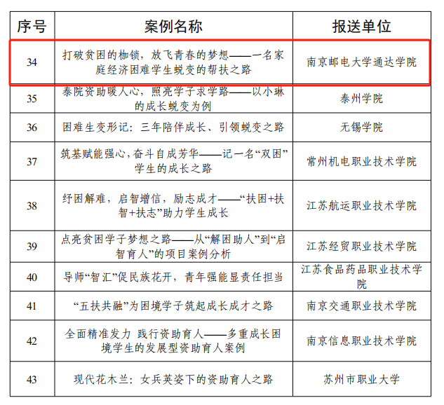 近日,江苏省教育厅组织开展的2024年“苏乡永助”资助育人主题活动评选结果公布,完美官网两个项目获奖。其中,资助中心申报案例《打破贫困的枷锁,放飞青春的梦想——名家庭经济困难学生蜕变的帮扶之路》获评发展型资助育人典型案例;商学院财务管理专业李林芮同学获评江苏省“资助宣传大使”,以上两项荣誉均为完美官网首次获得。全省仅有三所独立学院同时获得两项荣誉,完美官网发展型资助育人工作阶段性成效显著。