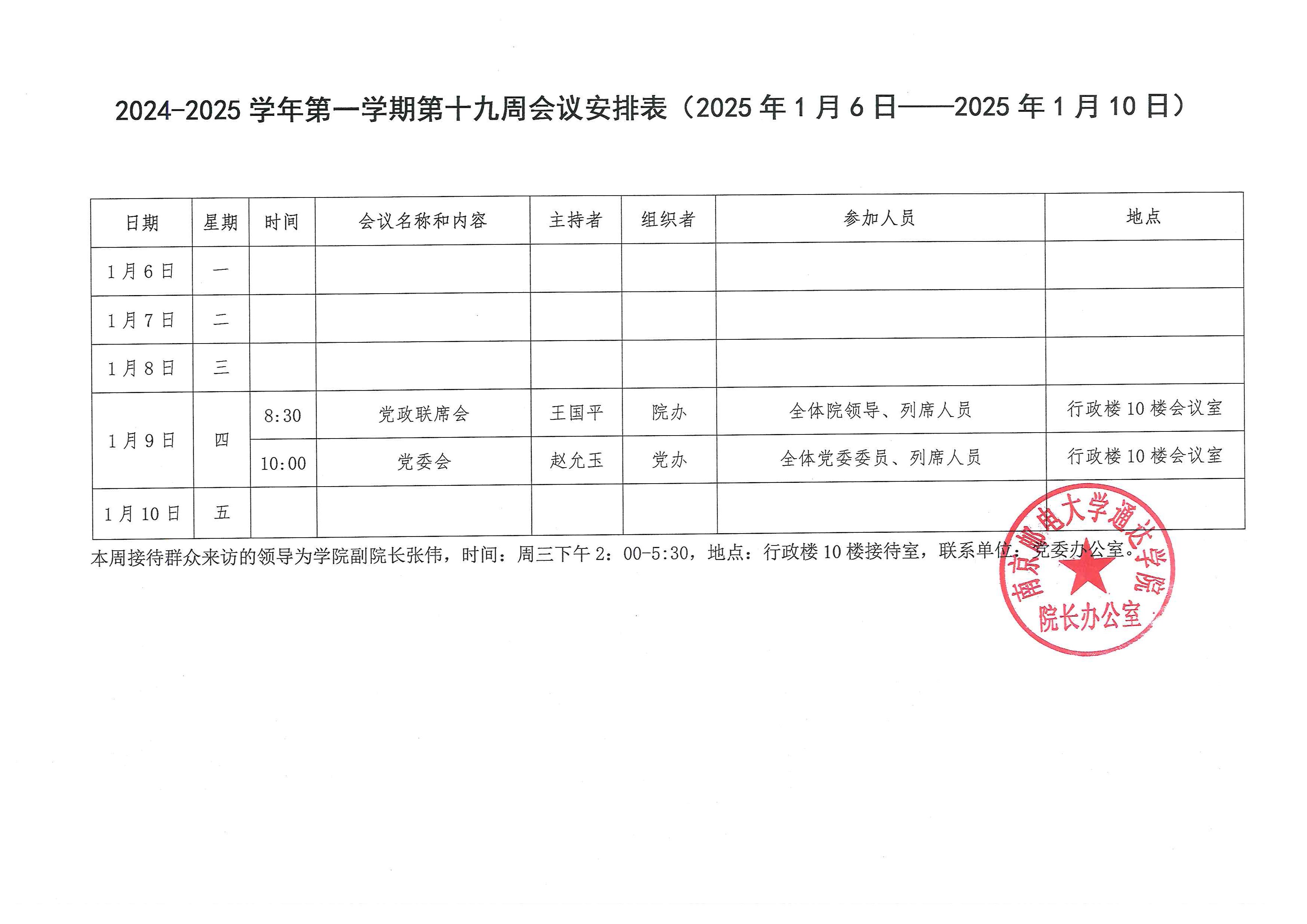 2024-2025学年第一学期第十九周会议安排表