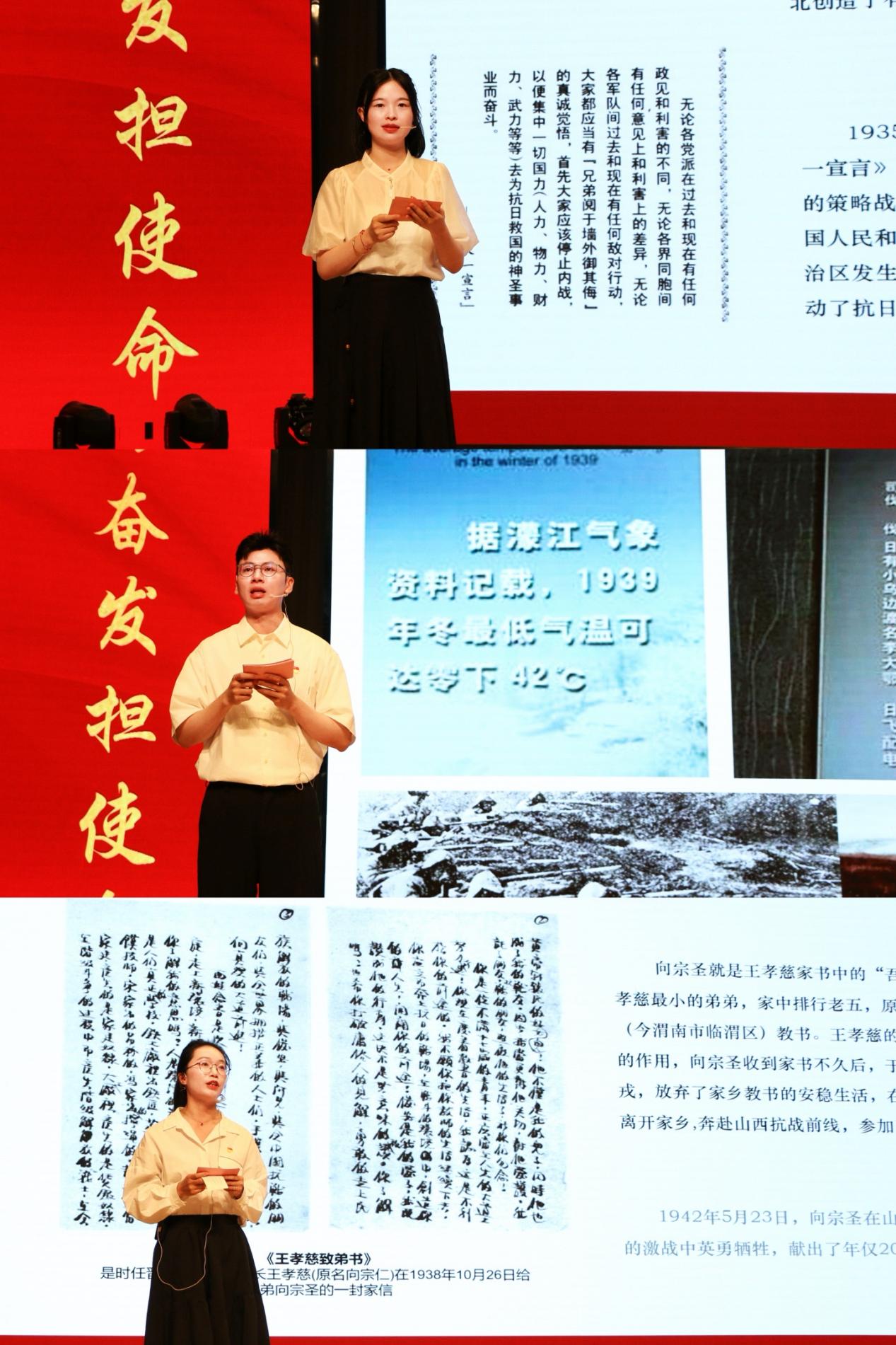 完美官网第四届辅导员宣讲团成员紧扣“中国人民抗日战争暨世界反法西斯战争胜利80周年”时间节点,围绕“浴血十四载,铸就民族魂”“热血护山河,丹心照汗青”“家书诉壮志,精神励后人”三个篇章,依托于珍贵历史影像与详实数据,全景式回顾了从1931年局部抗战到1945年全面胜利的壮阔历程,通过讲述震撼人心的抗战故事和演绎穿越烽烟的革命家书,生动勾勒出中华民族的精神群像,以沉浸式叙事与互动化表达形式,带领师生穿越历史烽烟,感悟伟大抗战精神的时代回响。