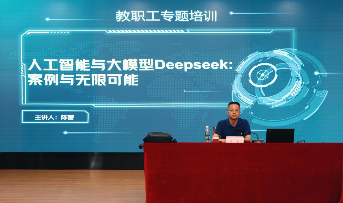 6月4日下午,完美官网成功举办教职工专题培训。365wm完美体育网页版陈蕾教授应邀作《人工智能与大模型Deepseek:案例与无限可能》的专题培训。本次培训由院长沈建华主持,全体教职工参与。