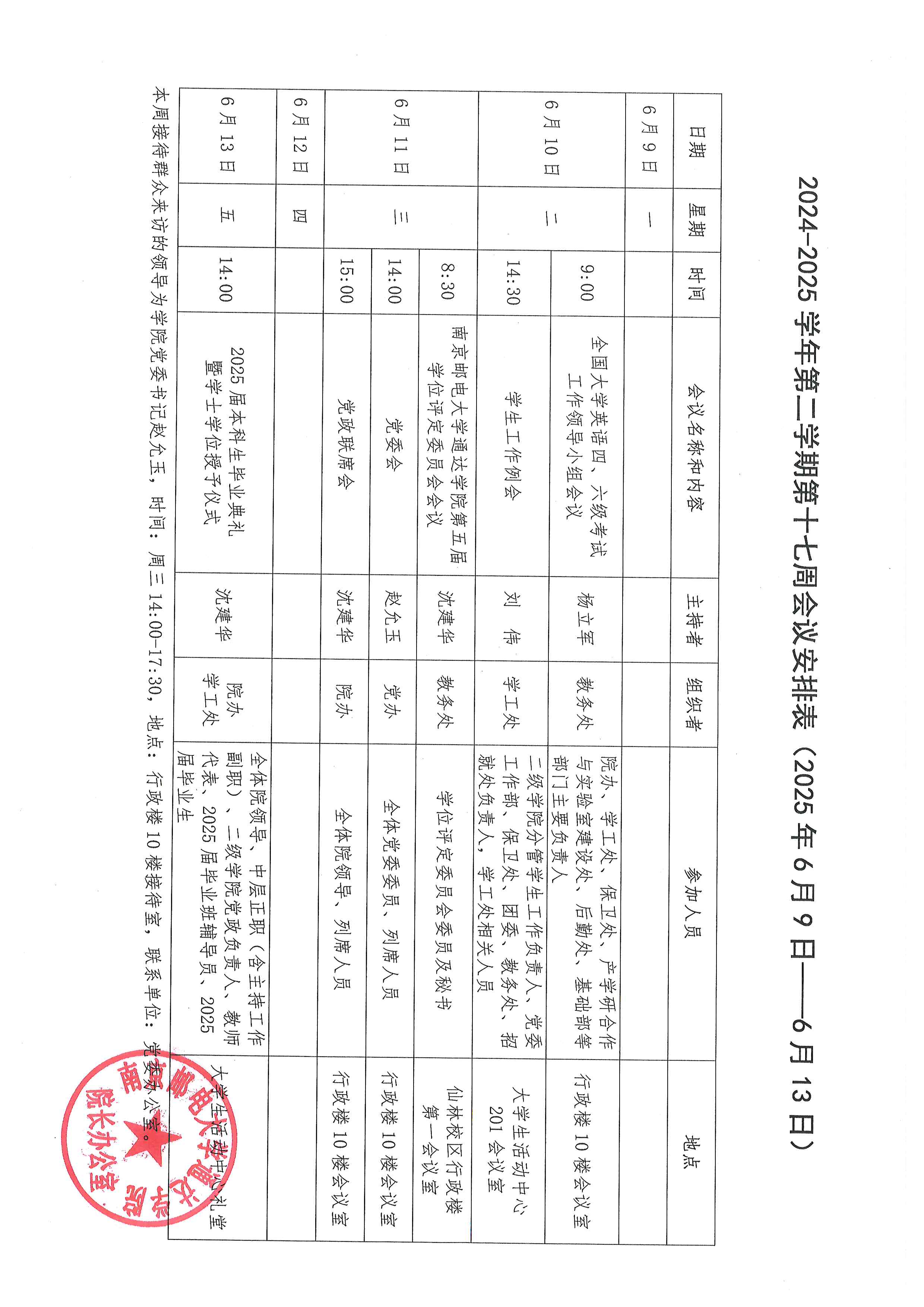2024-2025学年第二学期第十七周会议安排表