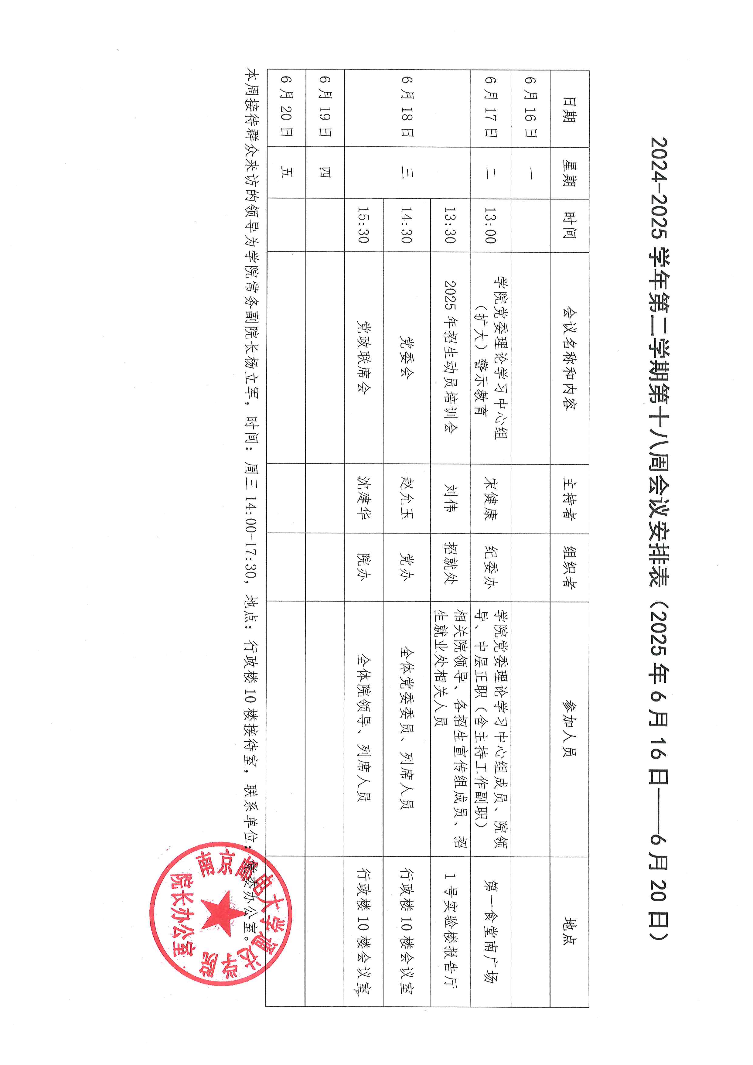 2024-2025学年第二学期第十八周会议安排表