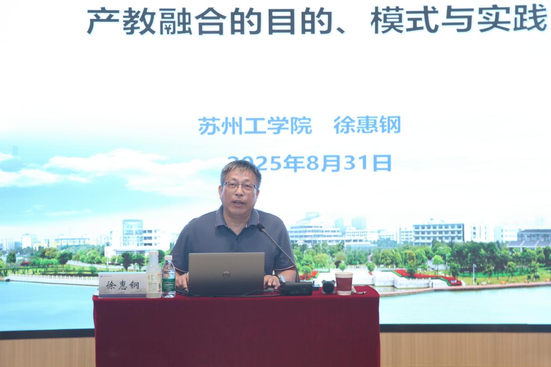 苏州工学院副校长徐惠钢以《产教融合的目的、模式与实践》为题,从对产教融合的基本认识出发,讲解产业元素融入人才培养全过程,结合案例阐述深化产教融合策略与模式。指出民办高校要通过产教融合创新人才培养模式,推动专业建设校级交流,引入企业资源,提升人才培养质量与服务社会能力,拓展学院发展空间。