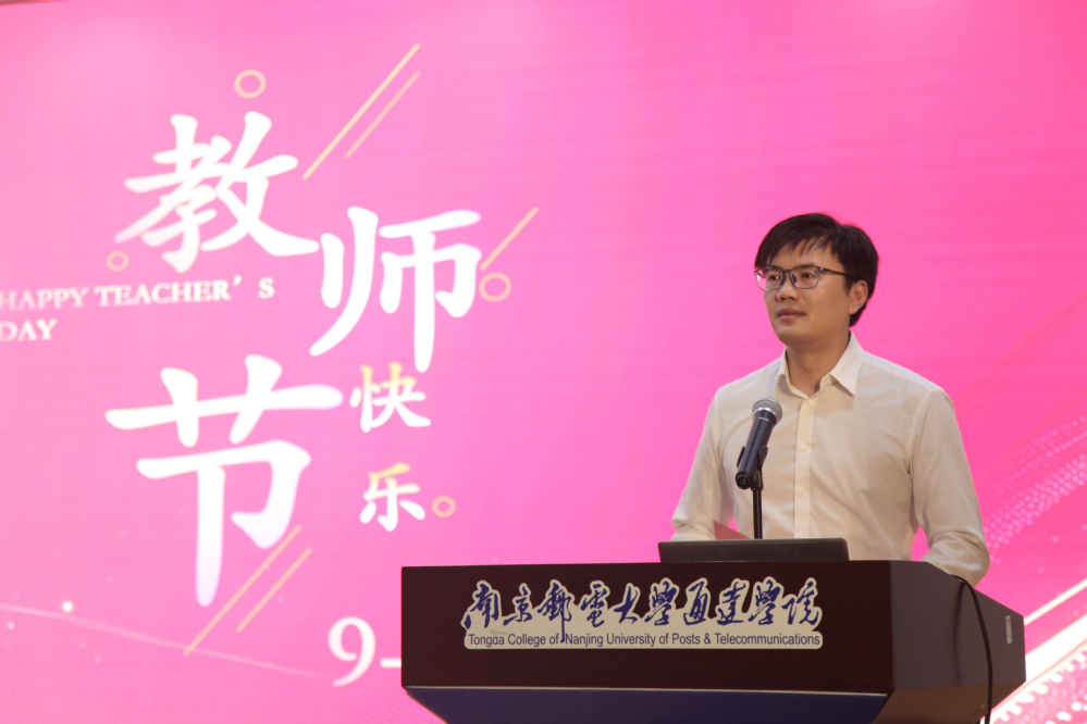 教师代表通信工程学院朱书眉分享了身边教师践行教育家精神的鲜活案例,从指导学生竞赛的“金牌教练”,到潜心治学的“严师”,再到关怀学生的“知心朋友”与默默奉献的行政人员,展现了通达教师队伍同向同行、共托学生成长的良好风貌,并呼吁全体教师以“躬耕教坛,强国有我”的信念,书写教育强国新篇章。