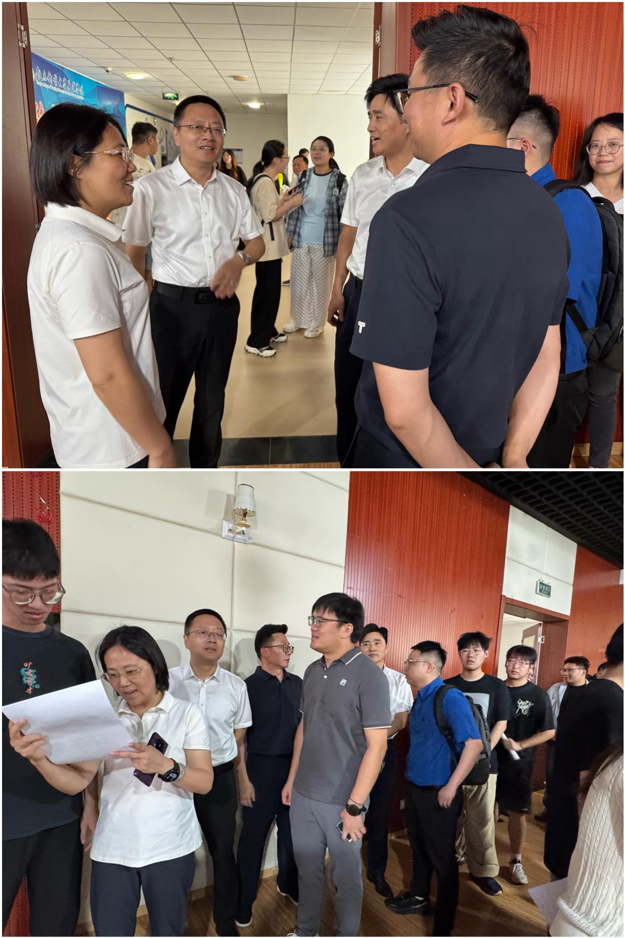 学院领导在招聘会现场与人社、企业、学生沟通交流