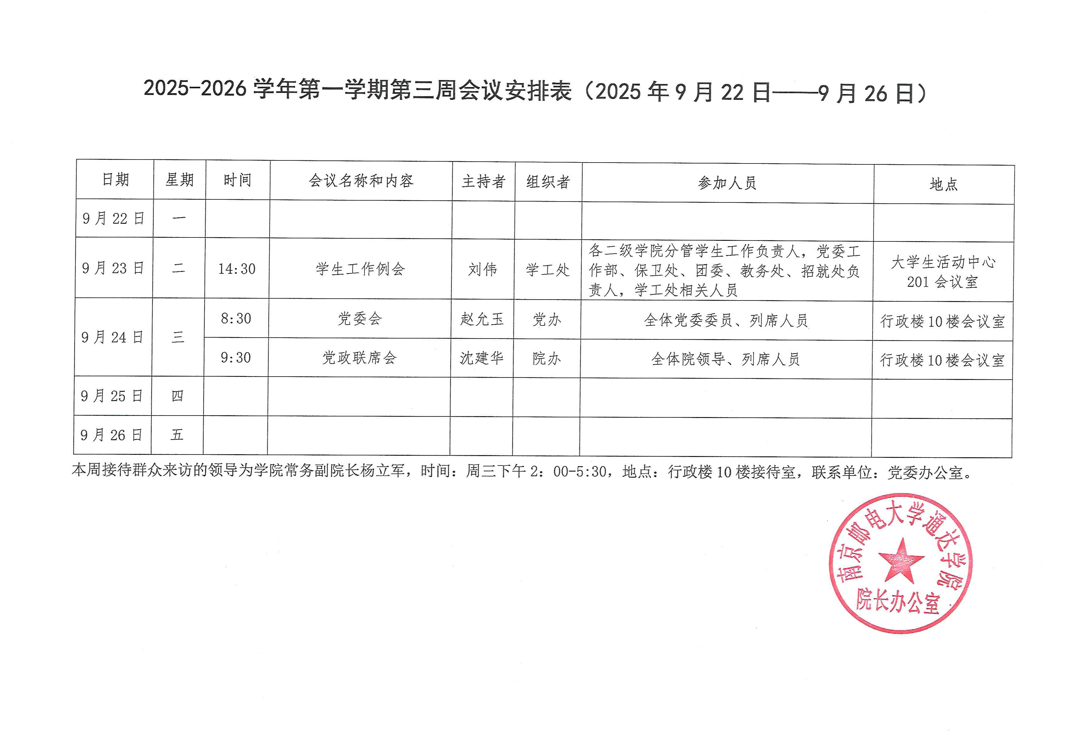 2025-2026学年第一学期第三周会议安排表