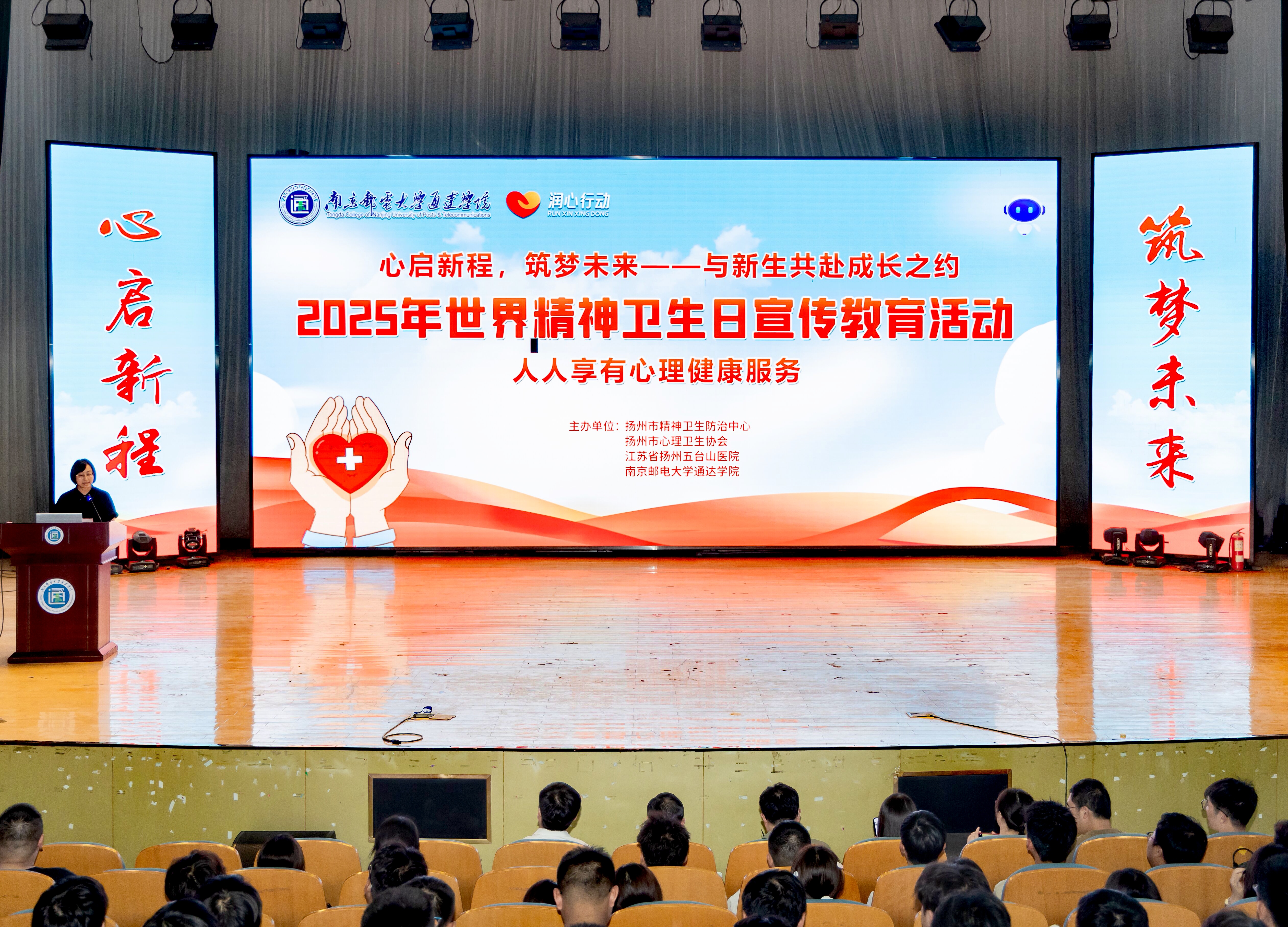 2025年10月10日是第34个世界精神卫生日。为进一步宣传普及精神卫生知识、推广心理健康服务,10月10日下午,完美官网以“心启新程,筑梦未来——与新生共赴成长之约”大学新生心理护航月开幕为契机,联合江苏省扬州五台山医院,围绕“人人享有心理健康服务”全国宣传主题,举办了2025年世界精神卫生日宣传教育活动。江苏省扬州五台山医院精神卫生专家团队、学院党委副书记兼副院长刘伟、学生工作处负责人、心理中心全体教师以及近千名2025级新生参加活动。