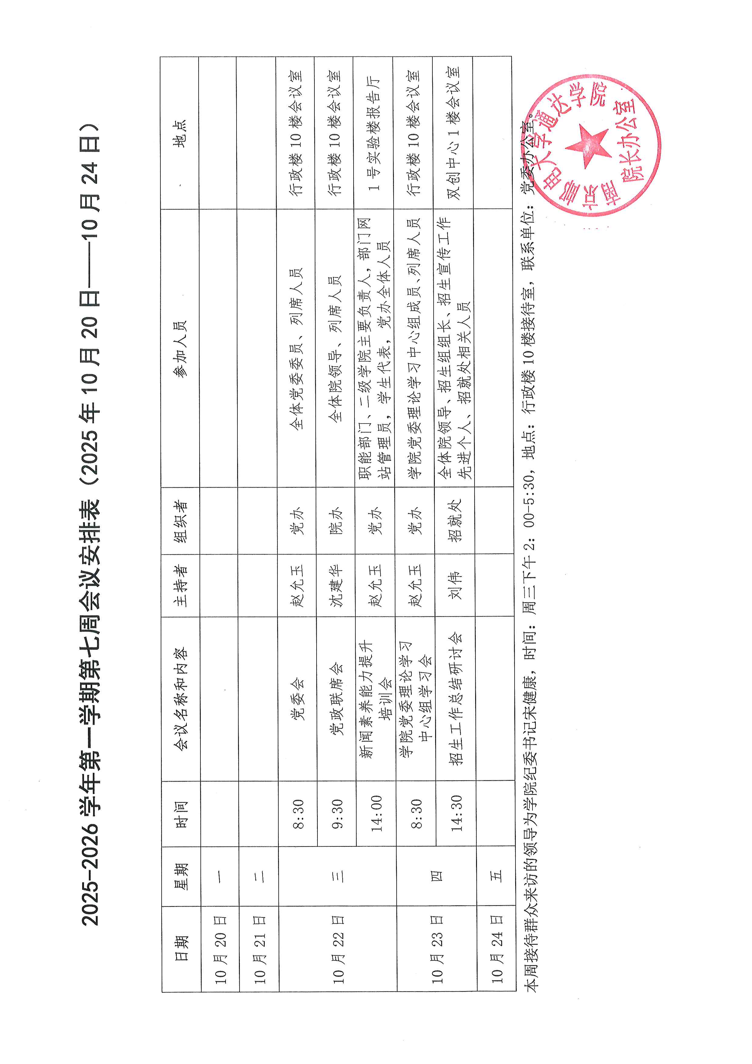 2025-2026学年第一学期第七周会议安排表