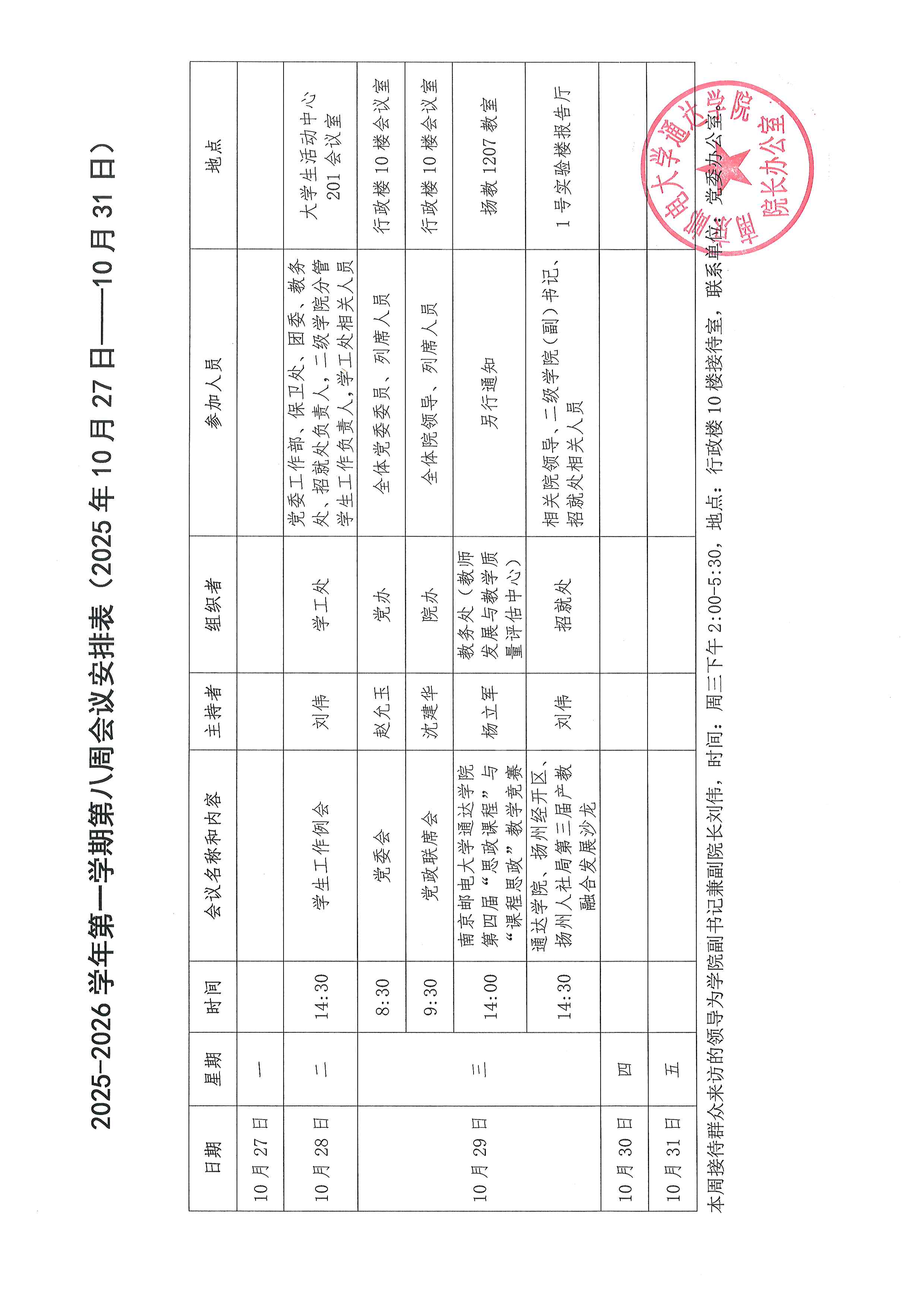 2025-2026学年第一学期第八周会议安排表