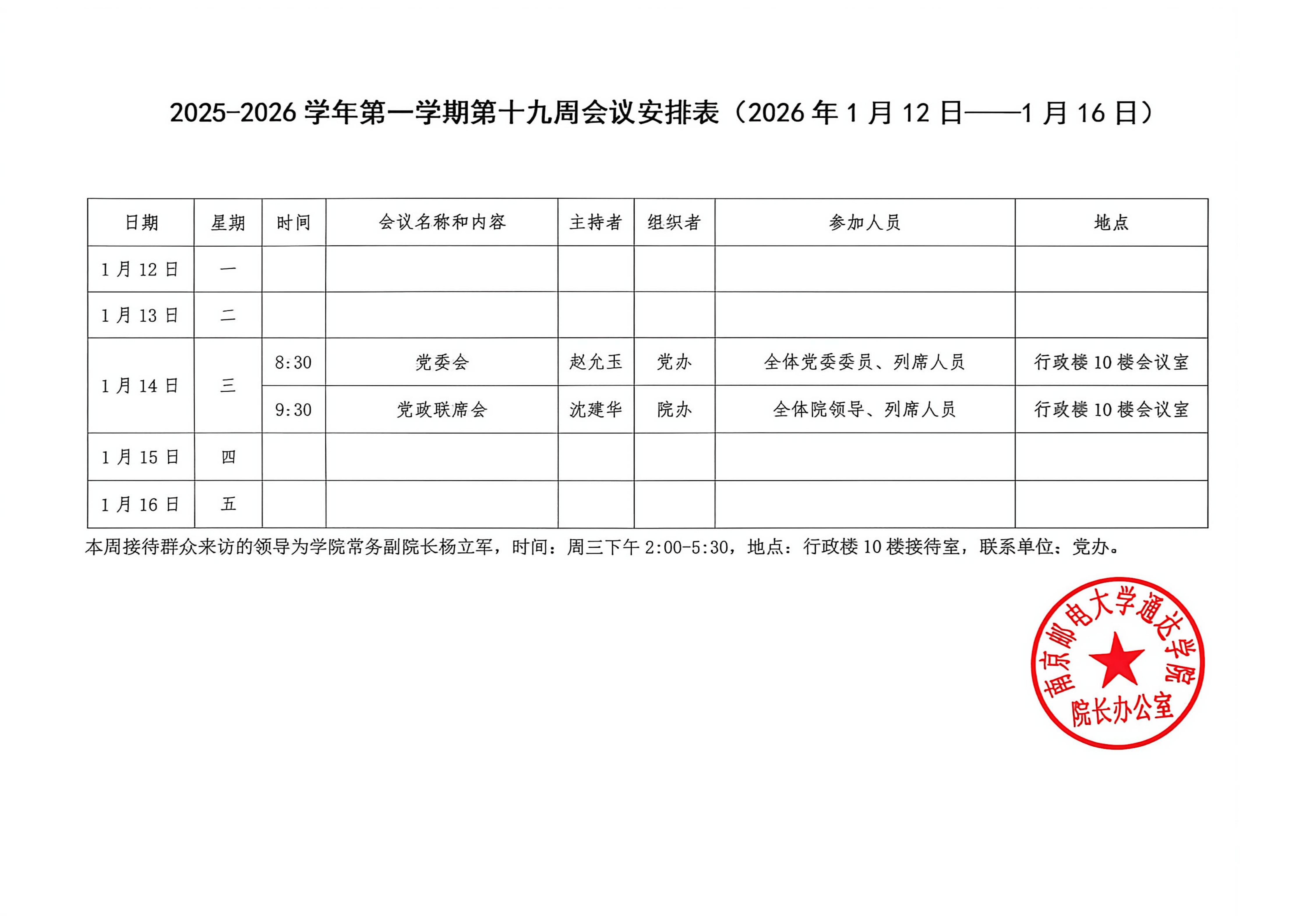 2025-2026学年第一学期第十九周会议安排表